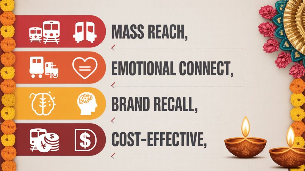 In this way, through a bright full train wrap or a captivating inside panel, your brand is traveling with every commuter during Diwali — there it is, visible, relatable, and unforgettable.