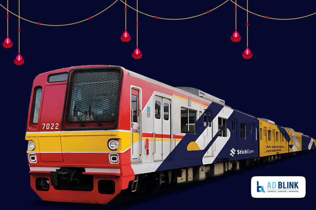 AdBlink Media is your one-stop solution for ATL, BTL, and Digital Advertising — we make your brand look good everywhere. This festival of lights, we have a secret to share with you. It’s a exclusive train advertising packages spreading across the major cities — Mumbai, Pune, Delhi, Hyderabad, and more.