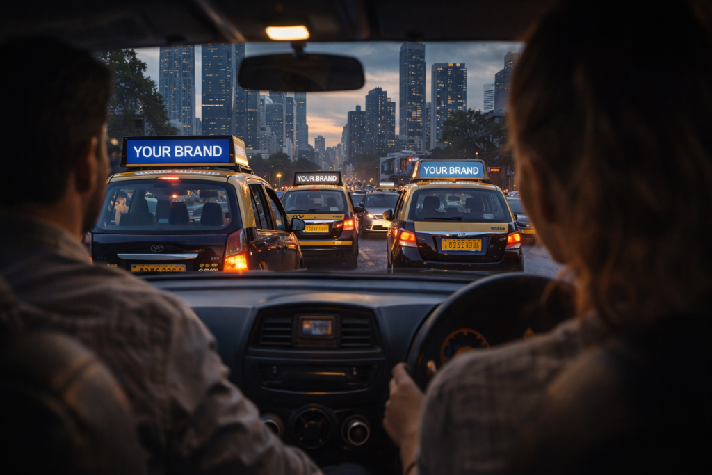 Compared to static hoardings, taxi advertising offers mobility and multiple touchpoints across the city.