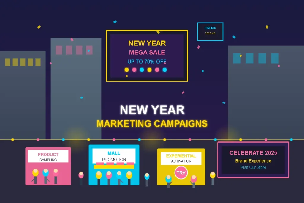 Campaign duration depends on the objective. ATL campaigns often run longer to build recall, while BTL campaigns may run for shorter periods to drive immediate engagement. Many brands start with a focused New Year campaign and extend it based on performance.